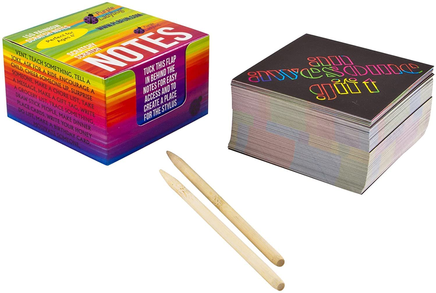 スクラッチ式メモ用紙レインボー色:表面黒色・削ると虹色、正方形厚紙150枚入、クラフト・景品・ オフィスの飾りにも (Purple Ladybug Novelty)