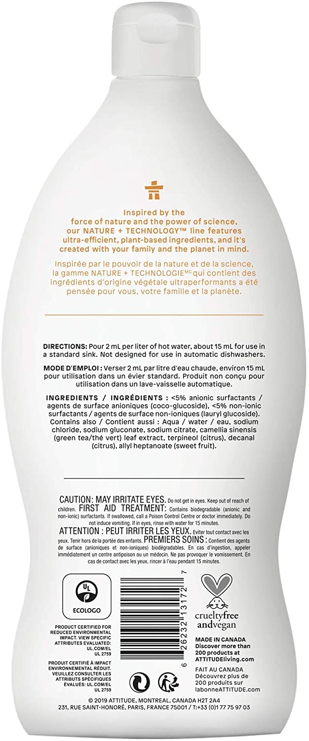 ATTITUDE(アティチュード) ディッシュウォッシング(食器用洗剤) シトラスゼスト 700ml