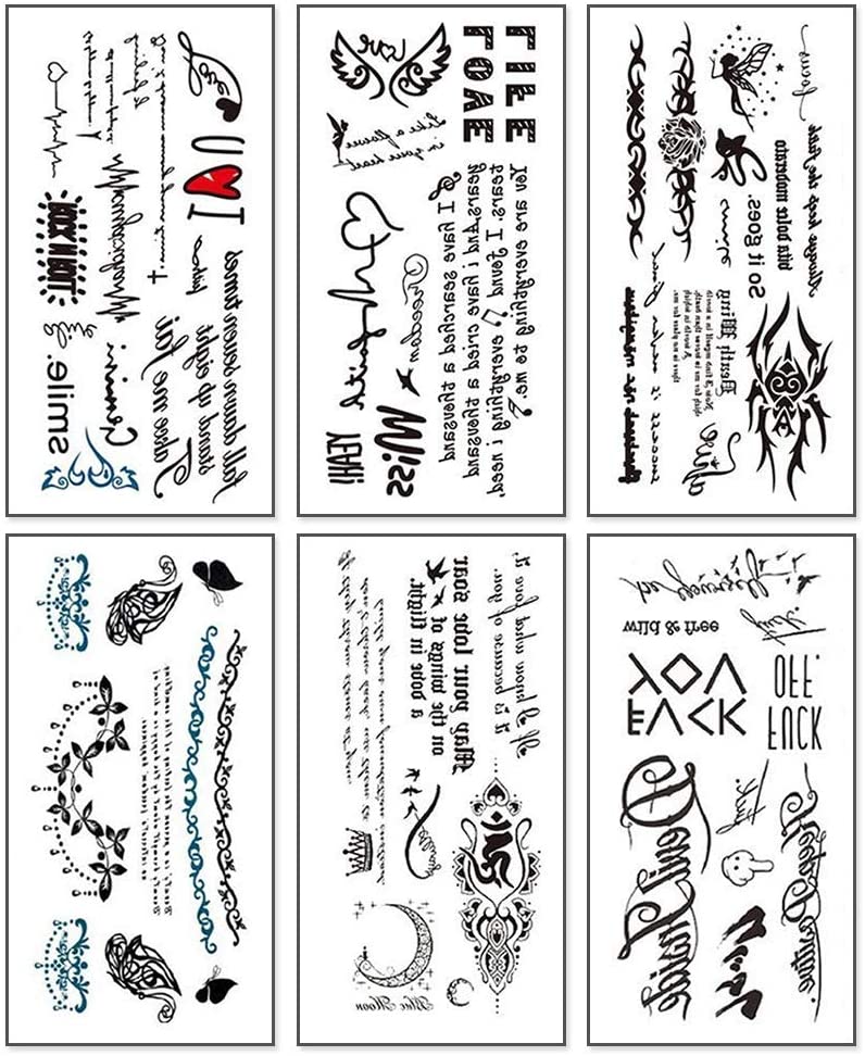 CARGEN タトゥーシール 文字 幾何模様 エルフ 月 花など 防水刺青シール 入れ墨 アートステッカー スティック図スタイル小柄 6枚セット(190*90mm)