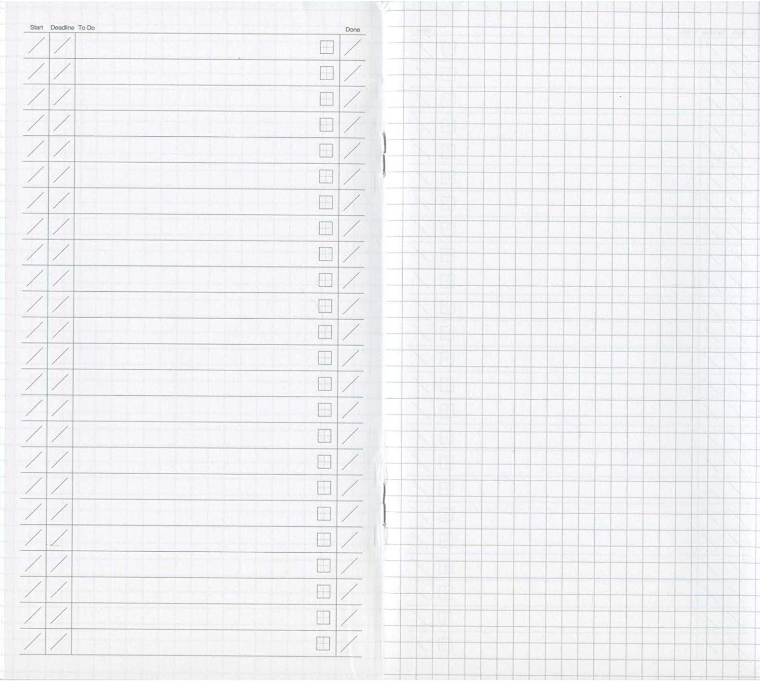 それぞれが1つの機能を持った「ファンクションノート」シリーズのA5スリムサイズ。。。タスク管理に役立つToDoリスト形式のノート。「開始日」「締切」「やるべきこと」「進捗状況チェック」「終了日」の記入ができます。右ページは「ガントチャート」で視覚的に工程の管理(2ヶ月)ができるようになっています。。。仕様。・左ページ:ToDoリスト。・右ページ:ガントチャート。・全64ページ。。サイズ:縦=210mm 横=120mm 厚さ=5mm。規格サイズ:A5変形。表紙仕様:左開き、ソフトカバー、紙製。