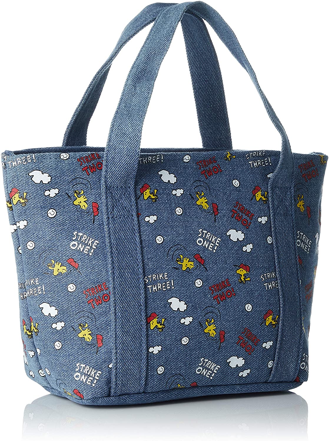 サイズ:Sデニム地にコルクでキャラクターを描いたバッグ内側は保冷保温効果のあるアルミ蒸着フィルム貼り保冷剤等が入る便利なメッシュポケット付きランチバック以外でも小物入れ手さげバックとしても便利