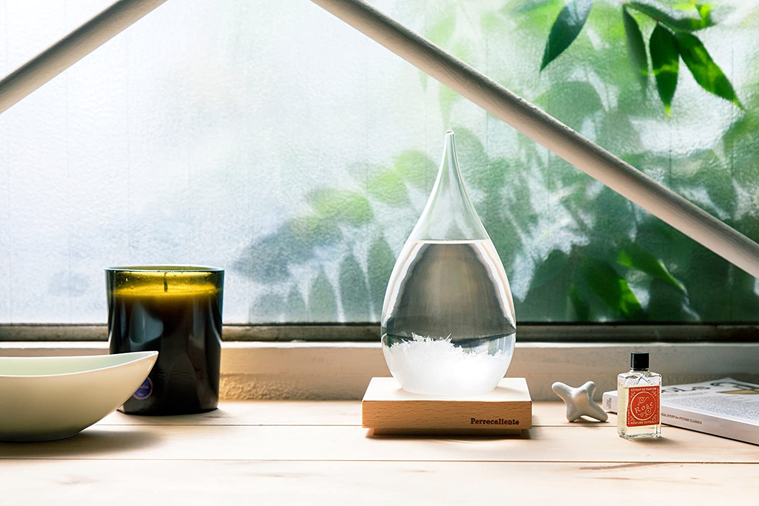 ・材質:本体:硼珪酸ガラス 台座:ブナ材 内部:水・エタノール・天然樟脳・塩化アンモニウム・硝酸カリウム