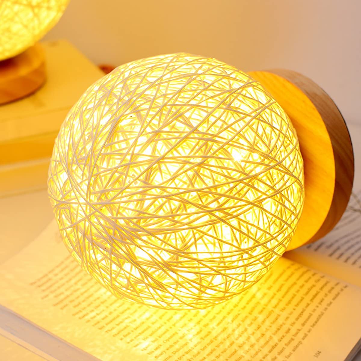 ・?【目に優しい】LEDライトは目に優しいので 、手織りの麻のロープの籐のランプシェード、光のソフト、眩しくない、サイズ:16*16*20 センチメートル ナチュラルな木目、質感、クリア、環境にやさしい、耐久性