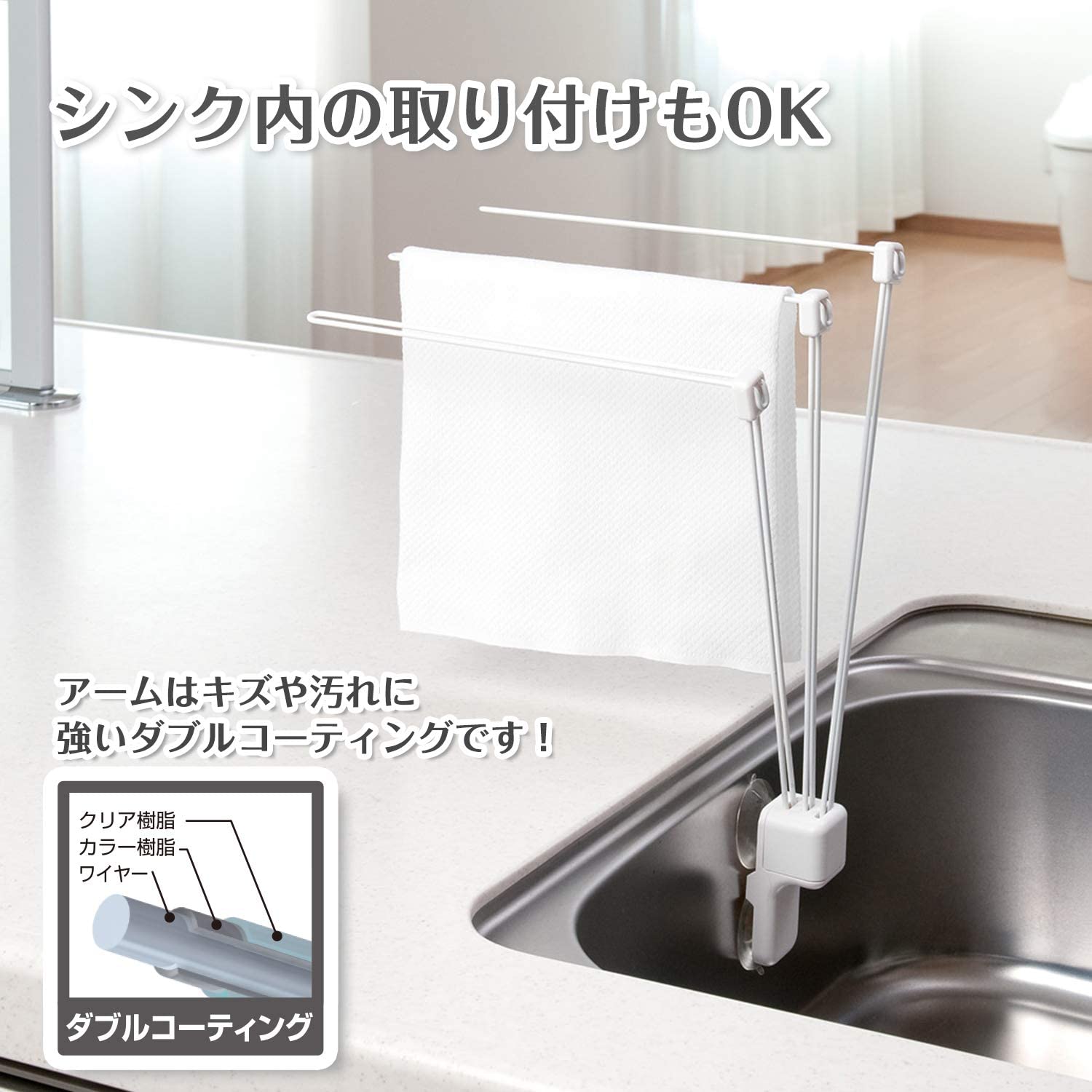 ・省スペースにふきんが3枚掛けられる。