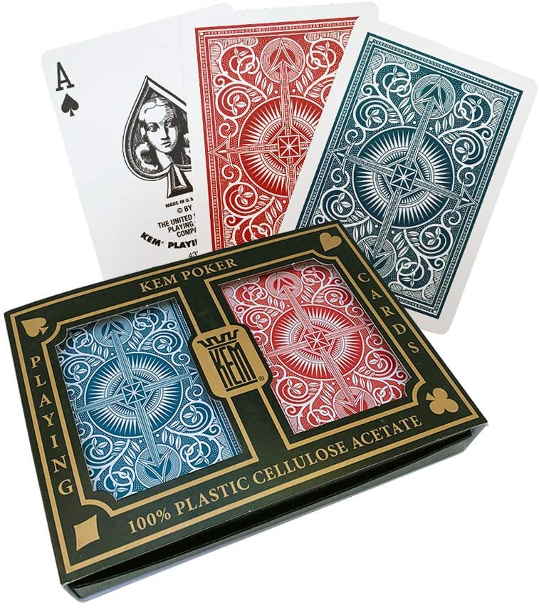 プラスチックトランプの最高峰メーカー「KEM」社のプラスチック製トランプです。トランプ表面に特殊な加工がしてあり、プラスチック特有のくっつきが解消され紙製トランプの感覚で使えます。又、特殊な柔軟性もあり、破れ・ヒビ割れ・角欠けがなりにくい優れた耐久性もあります。汚れた場合は家庭用中性洗剤で洗う事ができ、何度でもご使用になれます!