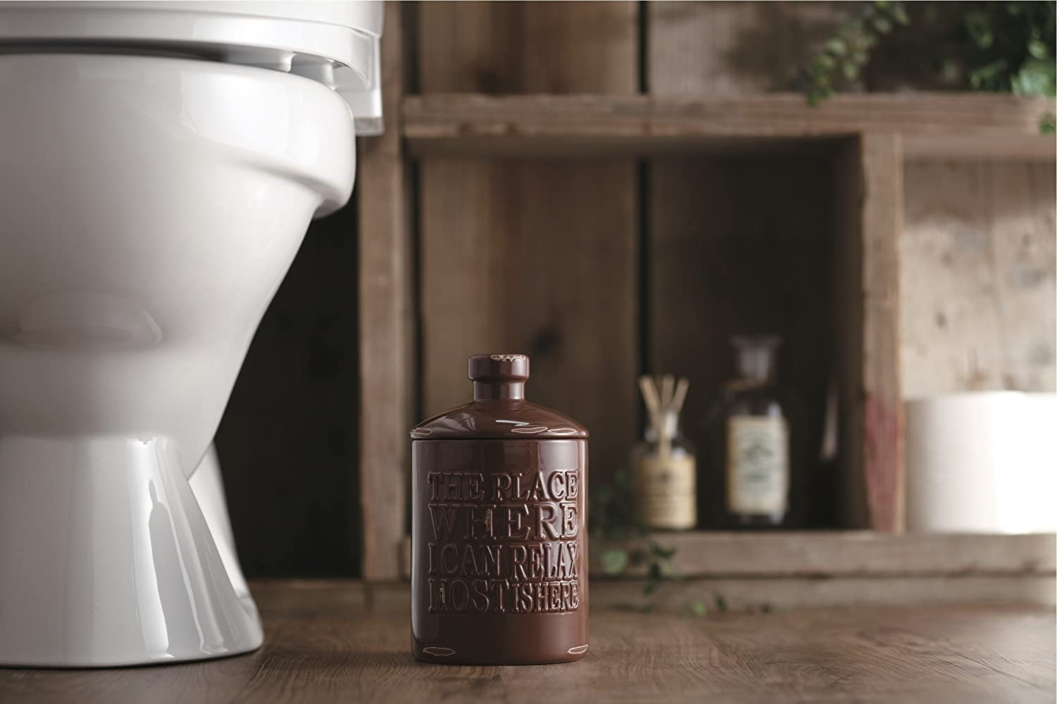Color name:ダークブラウンヴィンテージ風ボトルをモチーフにしたトイレポット「ココが私の1番リラックスできる場所」という意味の文字が書かれています使い古された陶器のようなキズや味わい深いヴィンテージ風加工がおしゃれなトイレを演出します