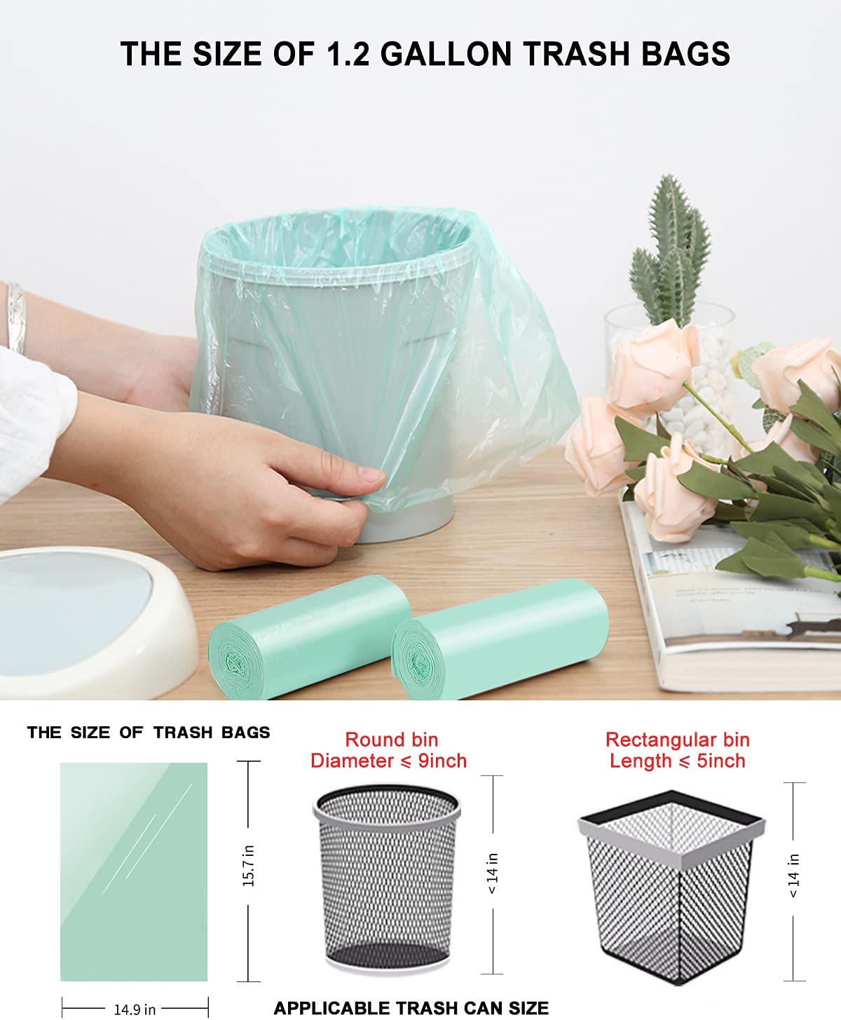 1.2ガロンの小さなゴミ袋 ミニ 堆肥化可能 丈夫 バスルームのゴミ箱ライナー ホーム/オフィス/キッチン用 5リットル/1ガロンにフィット グリーン
