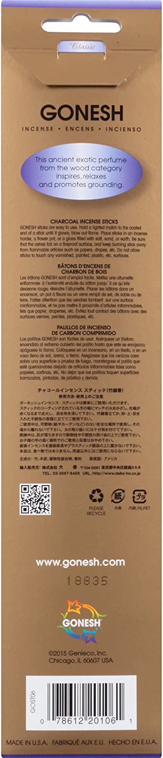 GONESH(ガーネッシュ) お香 インセンス スティック No.6(樹脂系の香り) 20本入 65mm×7mm×310mm