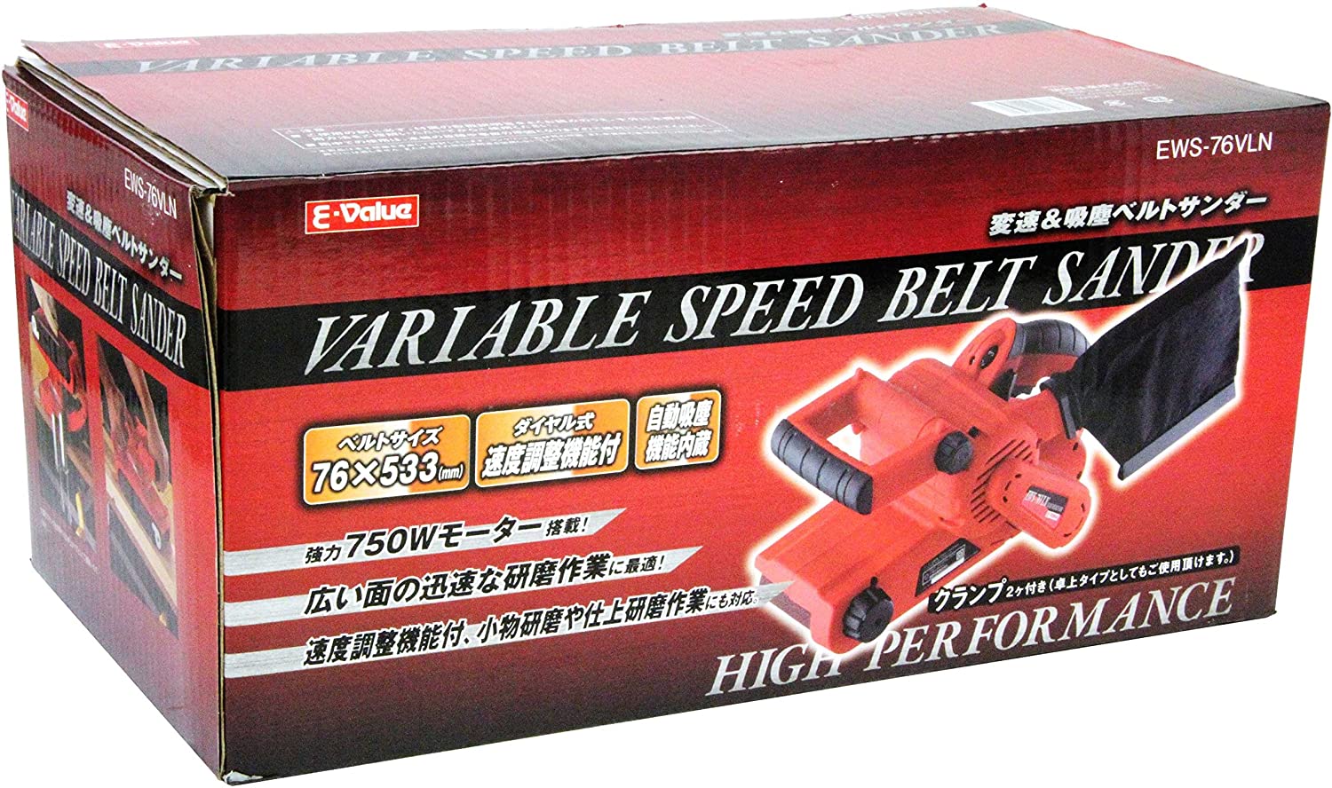 E-Value 吸塵&変速ベルトサンダー ベルトサイズ 76mm× 533mm EWS-76VLN