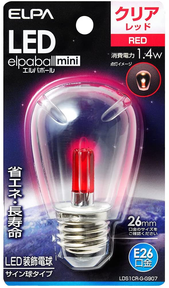 ELPA LED装飾電球 サイン球形 口金直径26mm クリアレッド LDS1CR-G-G907