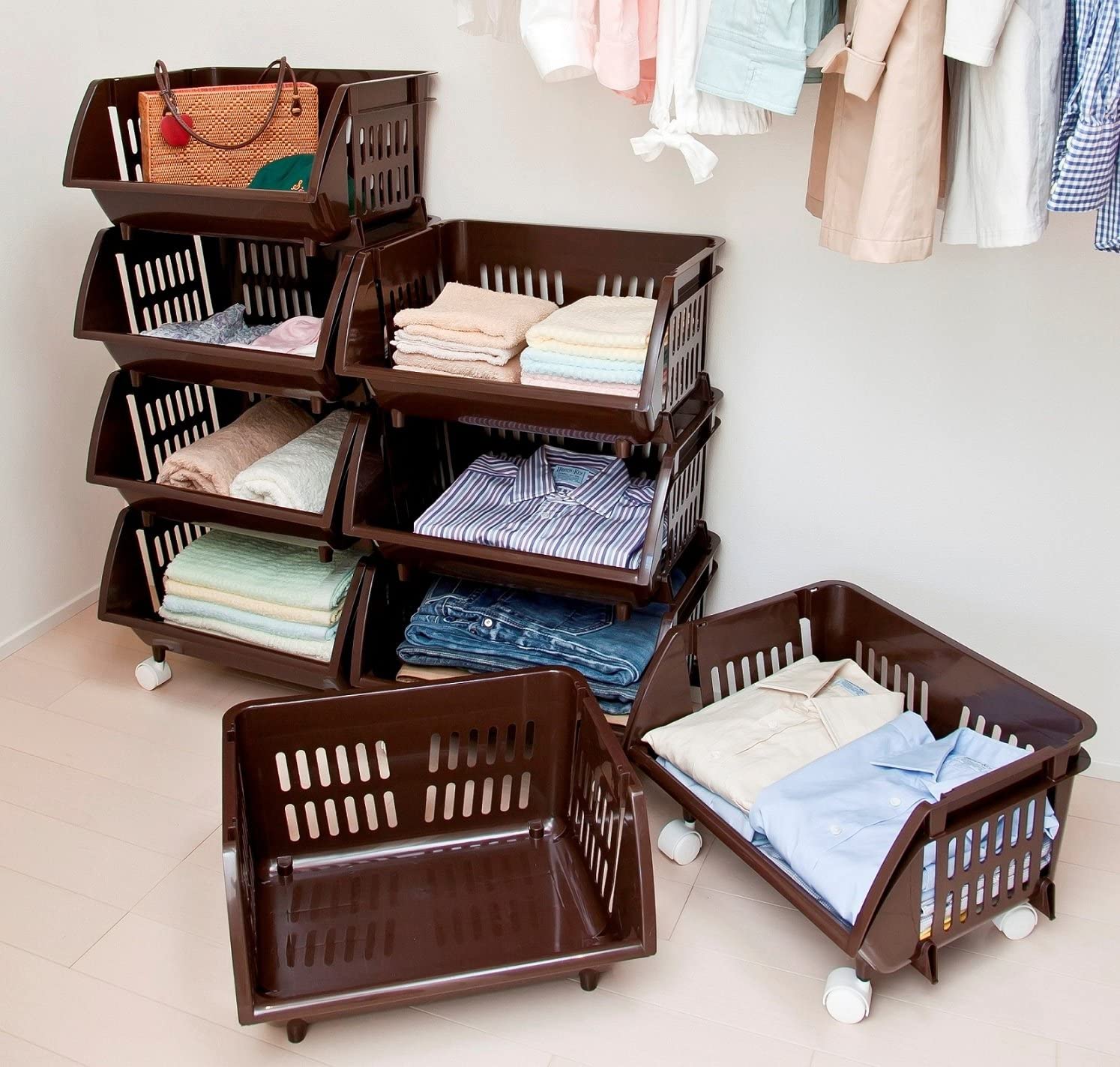 平和工業 積み重ねバスケット ナチュラルブラウン