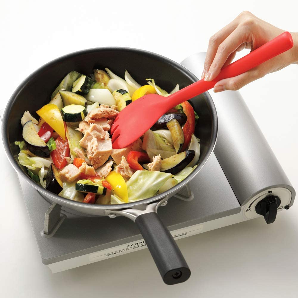 炒め物から和え物、取り分けまで便利に使える先端くし形状のヘラ。