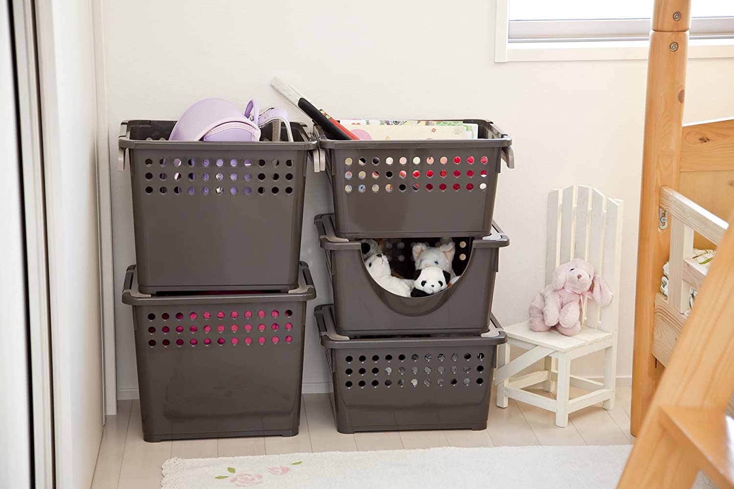 平和工業 スタッキングバスケット 浅型 ナチュラルブラウン