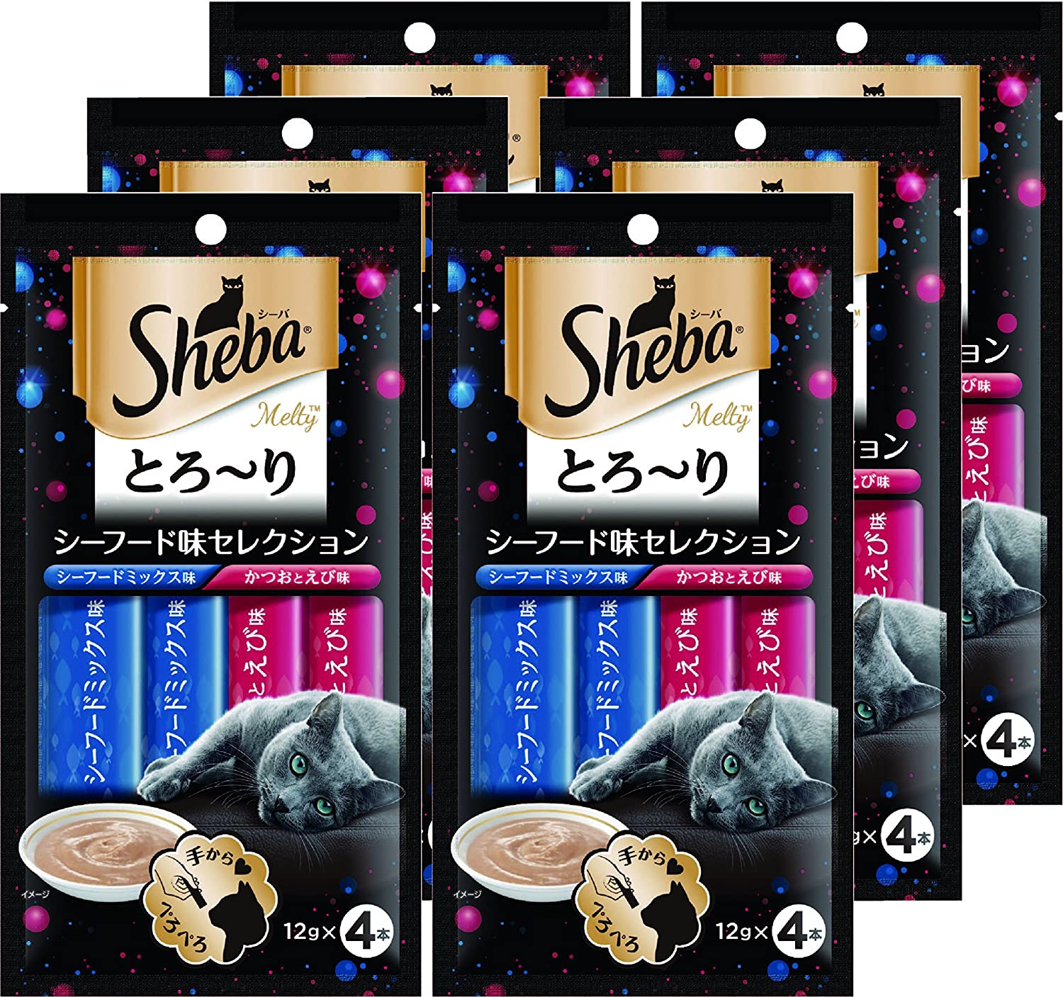 シーバ (Sheba) 猫用おやつ とろ~り メルティ シーフード味セレクション (12g×4本入)×6個 (まとめ買い)