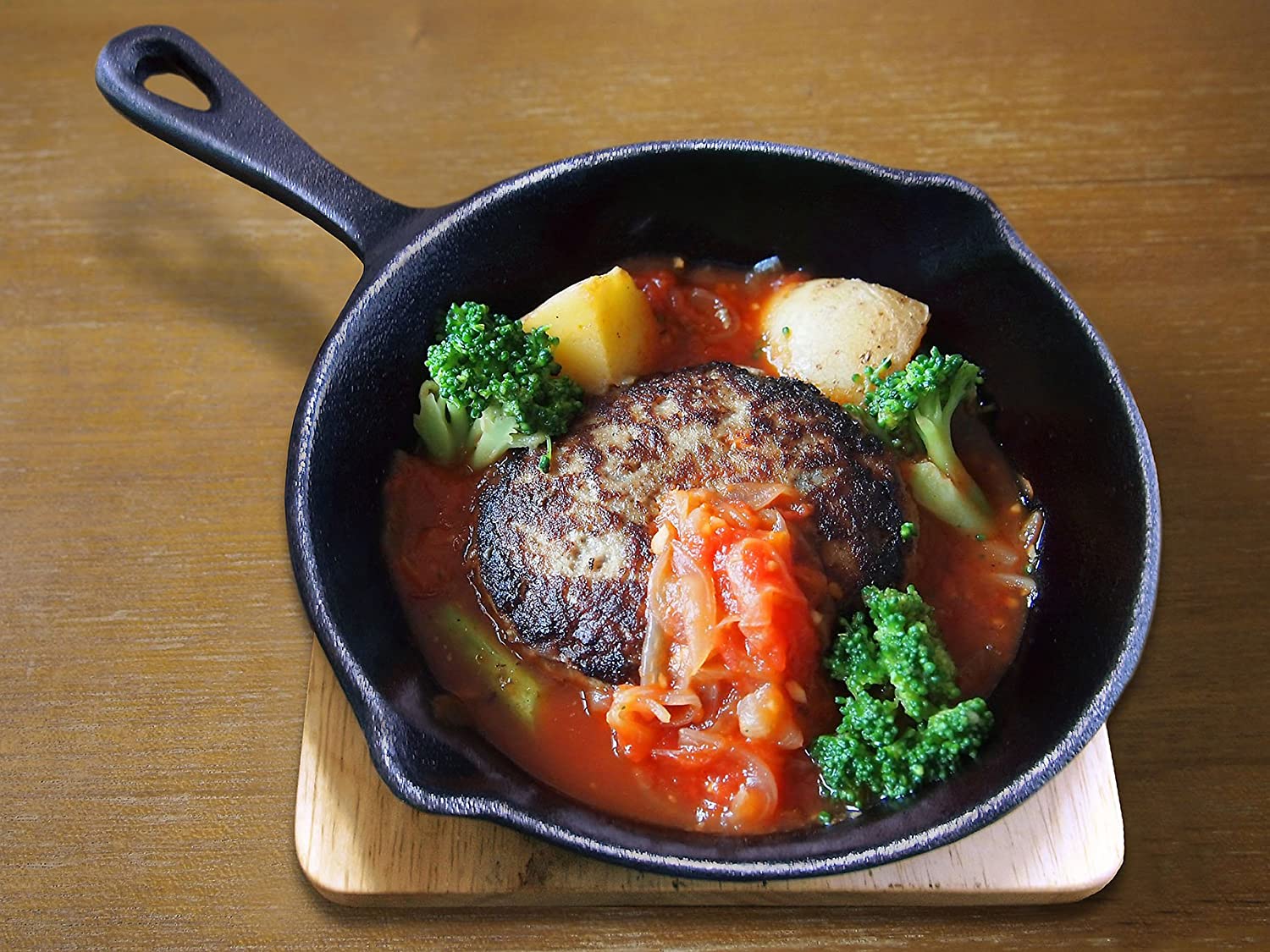 板厚5mmで抜群の熱制御力を発揮、熱がゆっくりと均一に伝わっていくので、食材のうまみを芯から引き出します。そのまま食卓にだしてもおしゃれでアツアツな料理が楽しめます。