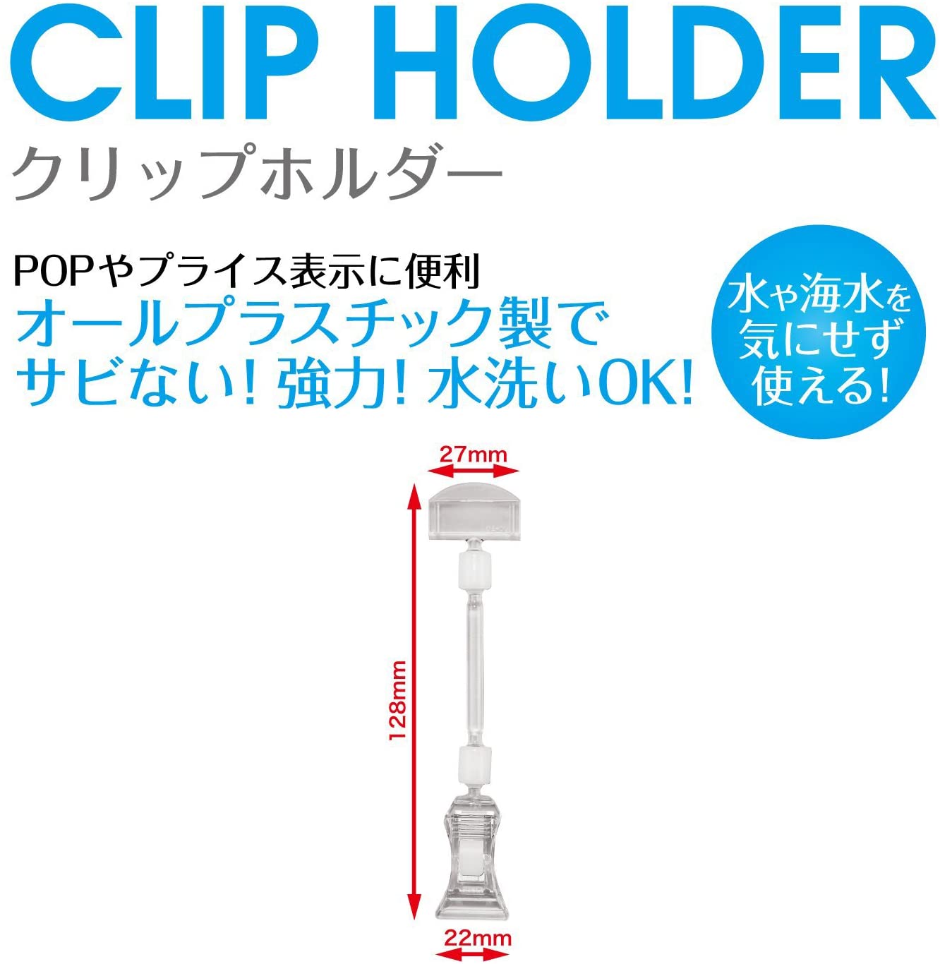 オープン工業 クリップホルダー POP プライス用 5個入 CH-221 透明(クリアー) 高さ(128mm) / (クリップ幅27mm)