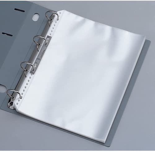 バインダーファイルの差し替えポケット。少量パック。 白い補強テープが、とじ穴の破れを防ぎます。 光の反射が少なく、目にやさしいエンボスポケットです。 ホコリが付きにくい、静電気防止加工素材を使用しています。 2・4・30穴のバインダーで兼用できます。収容サイズ:縦298×横214mm。入数:1袋10枚入