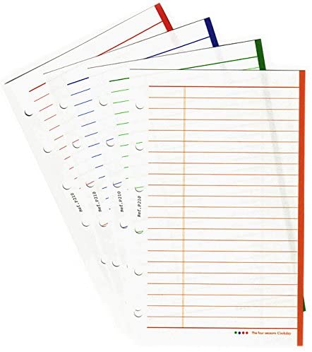 【四季のある国、日本ならではのアイデア】 筆記することを楽しんで頂くために製作された、抵抗感のない淡く細い上品なクックデイ独特のケイ線ノートです。 四季のある国、日本ならではのアイデア。 季節ごとにページの色合いが変化します。 紙の色でなく、ケイ線のプリント色を4色で表現しました。 「4つのカテゴリーに分ける」「四季で使い分ける」「四季ごとに差し込み使用」等...様々な形でご利用いただける、便利な商品です。 ※出荷ロットによって、リフィルの内容が多少変更される可能性があります。ご了承くださいませ。 【Cookday オリジナル5原色】 春の色:香櫞緑(こうえんみどり)/ シトロングリーン シトロンの未熟な実の色から来た色。「香櫞緑」は訳名。 明治時代は外来語に漢語調の訳をすることがよくあった。 夏の色:Gentiane / ジャンシャーヌ ラテン語のジャンティアナ。山野に咲く青い花、りんどうの色。 秋の色:Coq de Roche / コック・ド・ロシュ ルピコルとも言う。昔、南アメリカやの岩場に生息した渡り鳥の一種で 当時は婚礼の道化にこの雄鳥を踊らせた事があった。この鳥の羽の色。 冬の色:Vigogne / ヴィゴーニュ 羊毛特有の毛をしたアンデス山脈のラマ。このラマの毛で非常に繊細な生地を織る。 このラマの色。 基の色:西蔵(せいぞう)の紺 / ツァンヘイラン 朝掛(チャオクワ - 重要な慶事に着用する服)に着用する、皇帝の礼服の色。 市場に普及している高級手帳上質紙に比べても引けを取らない品質と美しさに、 お客様もきっとご満足いただける事と思っております。 ※出荷ロットによって、リフィルの内容が多少変更される可能性があります。 また、画像はイメージです。日付と曜日が実際とは合わない場合がございます。ご了承くださいませ。