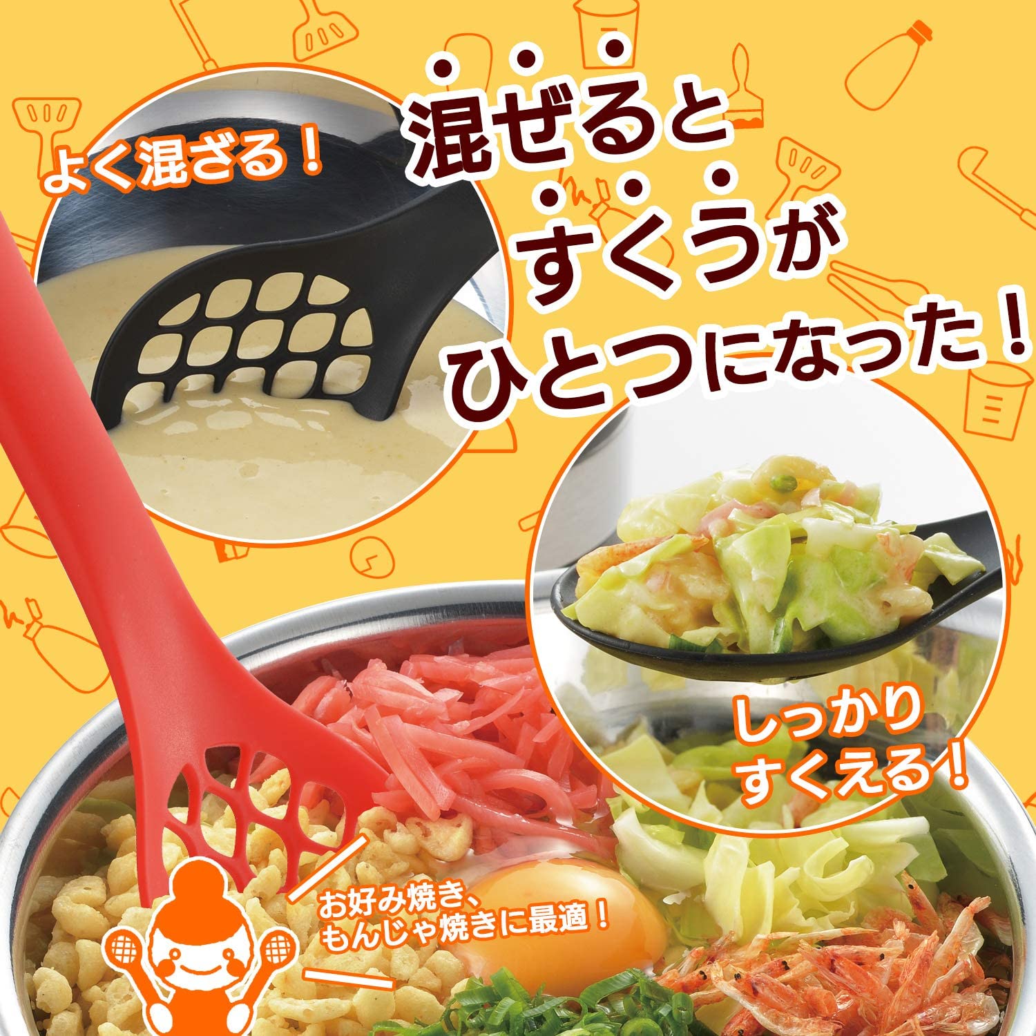 商品紹介「混ぜる」と「すくう」がひとつになりました! ●まぜる網目形状で、卵、粉、水がよく混ざります。野菜を入れても混ぜやすいです。●すくうお好み焼きの生地がすくえ、もんじゃ焼きは出汁を残して具材だけすくえます。耐熱性に優れているので、ホットプレートにもお使い頂けます。ご注意(免責)>必ずお読みください●記載されている注意事項をお守りください。
