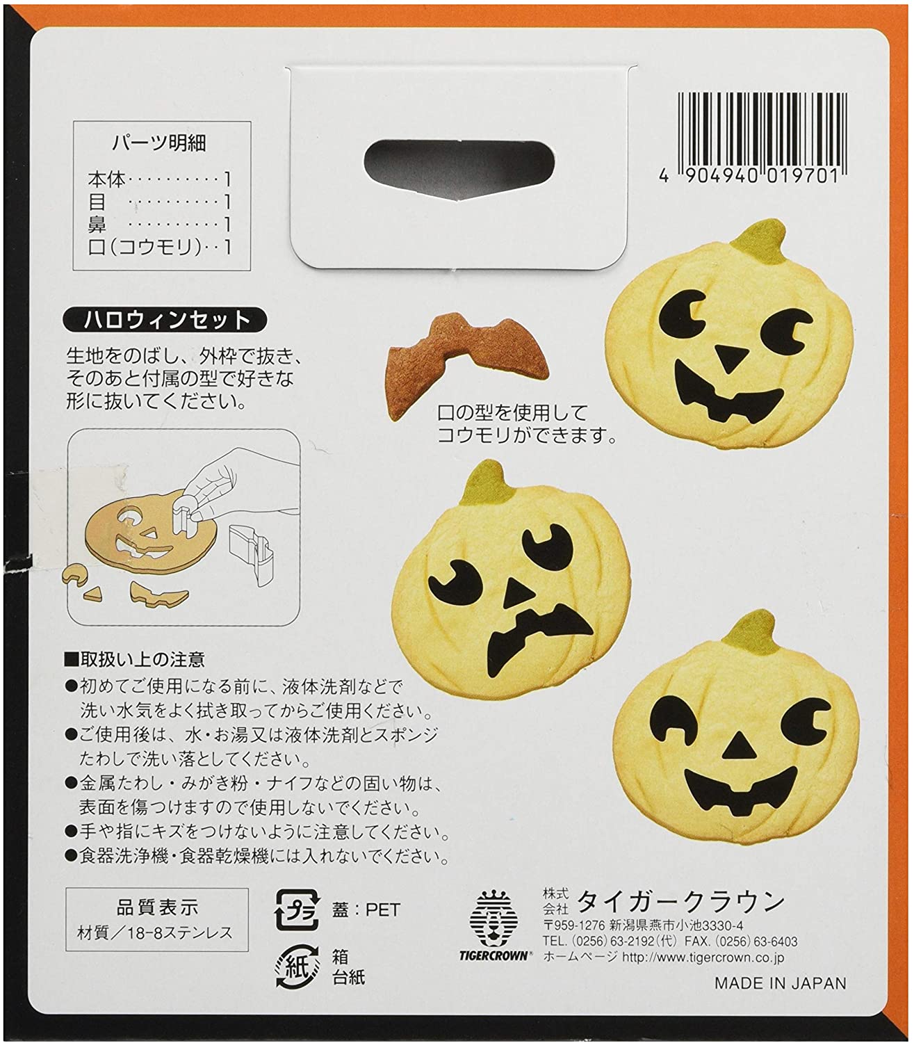 タイガークラウン クッキー型 シルバー 128×123×21mm ST抜型ハロウィンセット 18-8ステンレス かぼちゃ 顔 パーツ 1970 4個入