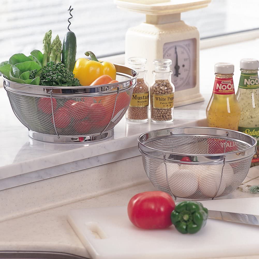 より●日本製、18-8ステンレスのザル●耐水性、耐蝕性に優れた18-8ステンレス製●足付なのでシンク面に直接触れず、水切りもしやすい●ステンレス線材、12メッシュの商品=1インチの中に12マスの線材が交差している●自動食器洗浄機可●製造はステンレス加工の産地、新潟県燕市