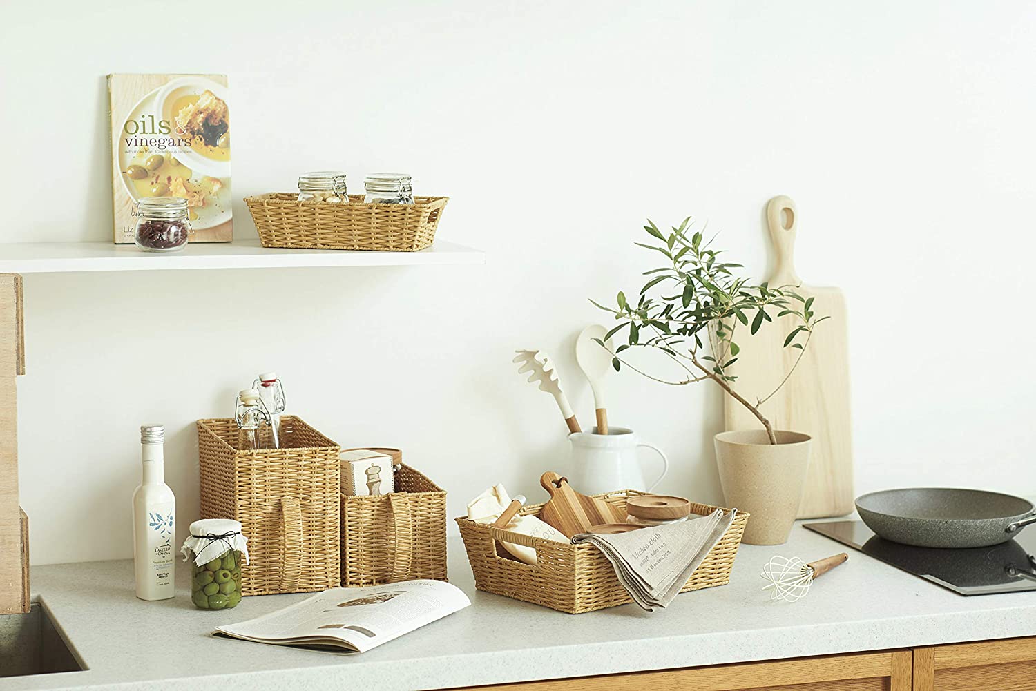 ポリプロピレン素材のナチュラルなバスケット。キッチンやお部屋の小物収納としてお使い頂けます。