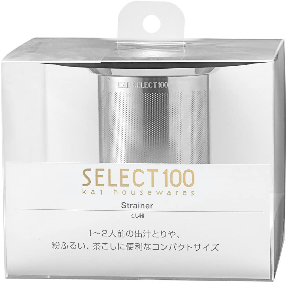 【貝印 SELECT100 調理シリーズ】1~2人前の出汁とりや粉ふるい(粉糖、ココアパウダー、小麦粉)に便利なコンパクトサイズ別売りのDH3127フタ付計量カップ200mと組み合わせて使用が可能。出汁とりに最適耐久性の高いステンレス板の網目で、茶葉の目詰まりなどを解消し、洗いやすく衛生的。