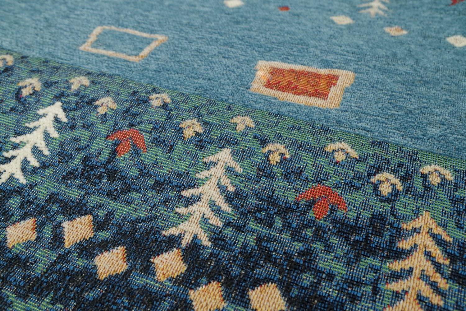カラー:ブルーソフトな手触りなシェニールマット。点画に1つずつ織り込んだデザインで、ペットの爪が引っかかりにくいです。