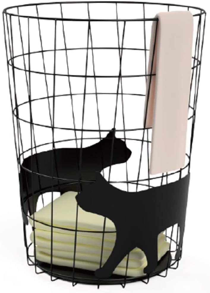 サイズ:Medium猫のシルエットが可愛い多用途ワイヤーバスケットゴミ箱やランドリーボックスなど使い方は自由取り外し可能なフタ付き