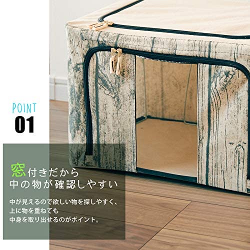 色:タングラム衣類やゴチャゴチャした小物などを収納するのに便利な北欧調の収納ボックスこの収納ボックスの嬉しいポイントは、重ねても前の窓から中の物を取り出せること蓋を開けなくても中の物を窓が覗けて「あれ?どこ行ったっけ?」となりがちな方にオススメ上部、前のファスナーは共にダブルファスナー式を採用しているので大きく開くことが出来るので出し入れも楽々両サイドには持ち手が付いているので持ち運びにも便利丈夫なスチールのフレームを使用しているのでボックスの上に約20㎏までの荷物が置けるので、スタッキングして(重ねて)お使いいただけます片面にはネームプレート入れが付いています容量は約66Lで沢山の衣類などを十分に収納できますクローゼットや押し入れの空いたスペースに重ねて使うのがGood