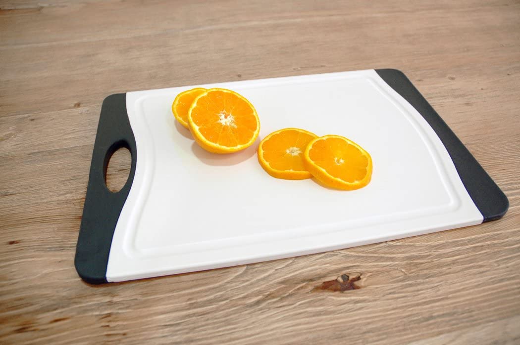 抗菌剤を練りこんだ、バクテリアやカビなどの細菌の繁殖を抑制する抗菌まな板片面には溝があり、食材などから出た水分が溜まるので調理台などを汚しにくい両端のラバー部分が使用面より若干厚めなので調理台と使用面との間に隙間ができ、直接触れにくくて衛生的両面リバーシブルで使えるラバー部分が滑り止めになっていて滑りにくい