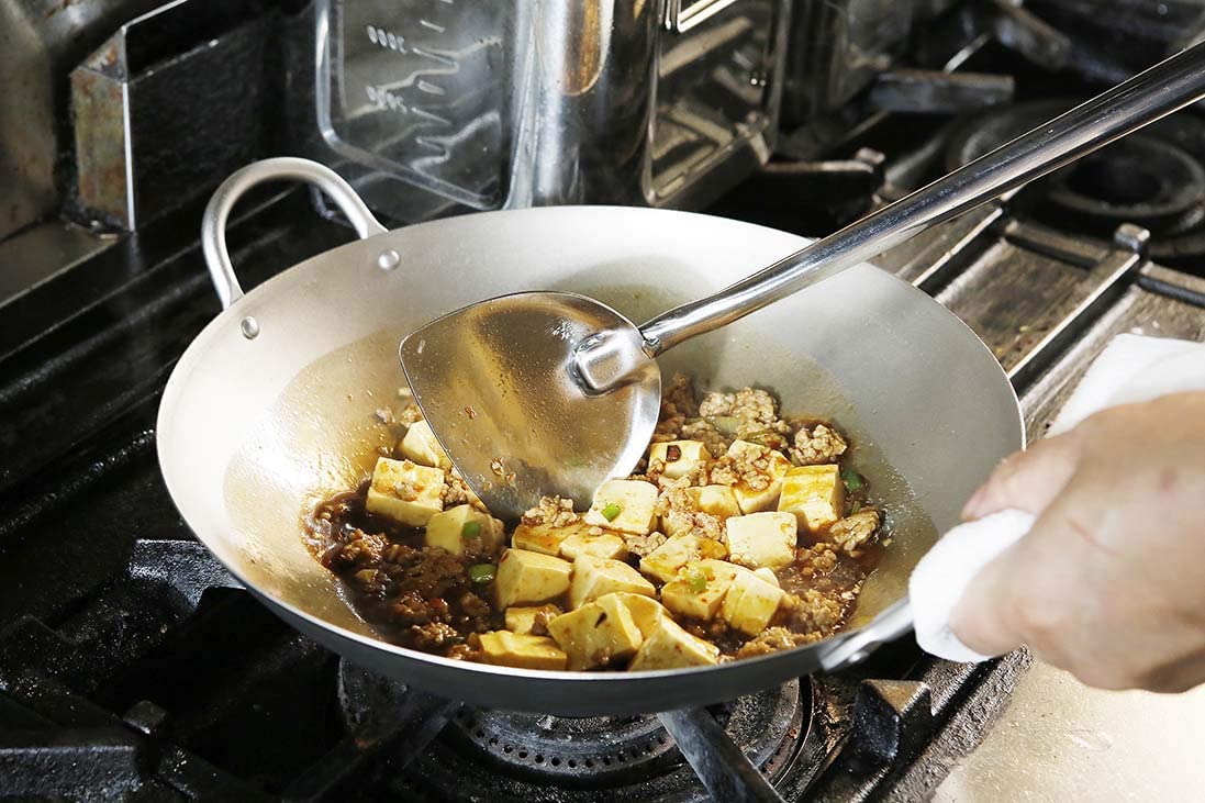 サイズ:45cmより●レストラン向け業務用商品●超軽量と評される圧倒的な軽さ、抜群の耐蝕性、しかも衛生的●優れた昇温速度を誇り、「素材のうま味を外に逃がさず手早く調理」中華料理の基本を実現する●表面に施したショット加工が鍋表面に凹凸を形成し油なじみを良くする。(熱しなくても油のなじみは抜群。)●金属の特性上、空炊きは変形の原因となる●これで手首の疲労や腰痛とはおさらばとにかく軽~い●ハンドル:18-8酸洗仕上●取手リベット止め