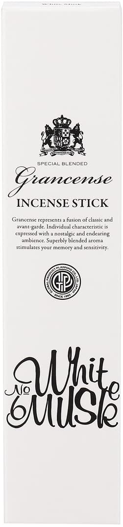 グランセンス インセンススティック ホワイトムスク 20g (約30本)(お香 香立て付 淡路島産 日本製 空気浄化 アロマ ベルガモットとミントの透明感ある香り)