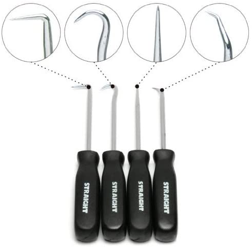 小さなOリングやシール類の取り外しに活躍するフックセットです。用途に応じて、4種類の先端形状から選んで使用してください。[全長] 135mm