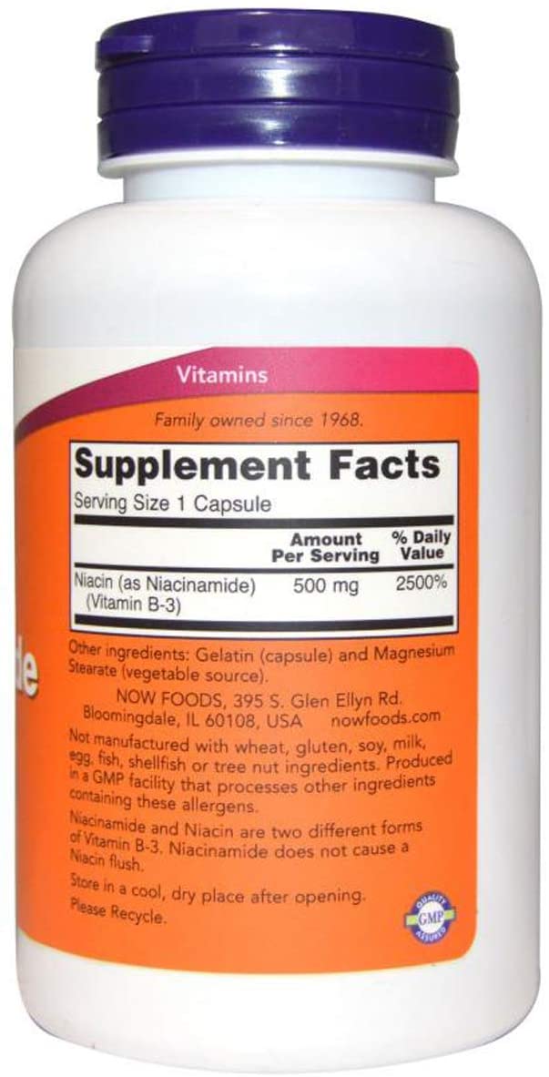 NOW Niacinamide provides crucial nutrition that must be added as a part of your healthy diet. It's a precursor vitamin, water soluble for easy absorption but doesn't cause the warm flush or reddened skin that regular niacin products can produce. This is a different form of vitamin B-3, but an important supplemental part of your sensible diet and exercise program.