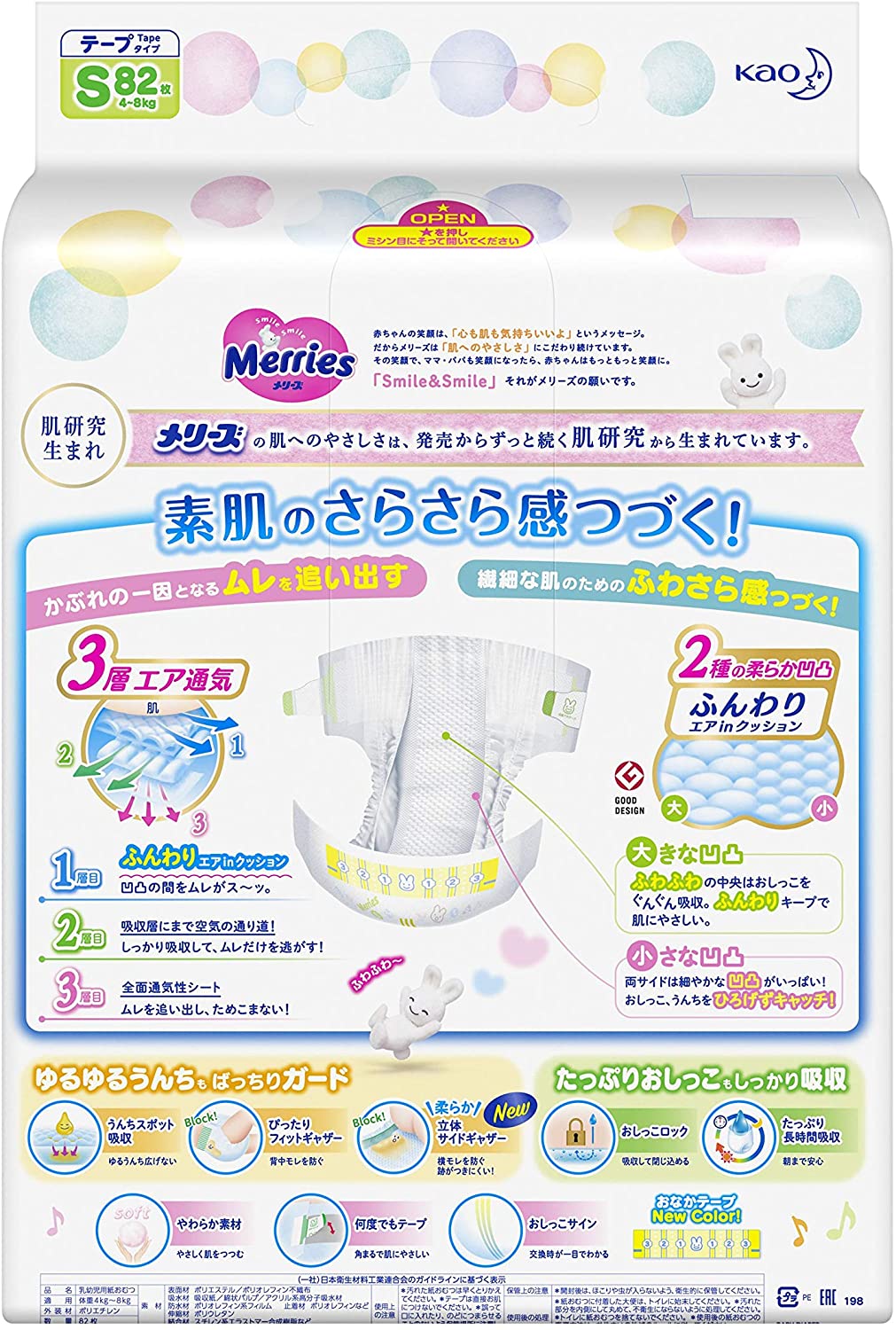 【テープ Sサイズ】メリーズ オムツ さらさらエアスルー (4~8kg) 82枚 【.co.jp限定】