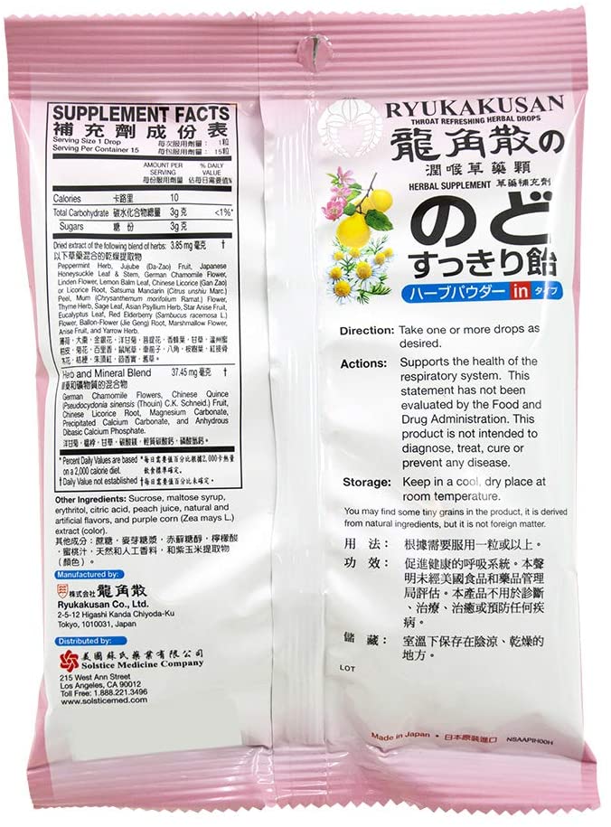 ・原材料 : 砂糖 水飴 エリスリトール ハーブパウダー もも濃縮果汁 ハーブエキス クエン酸 香料 着色料(アントシアニン)