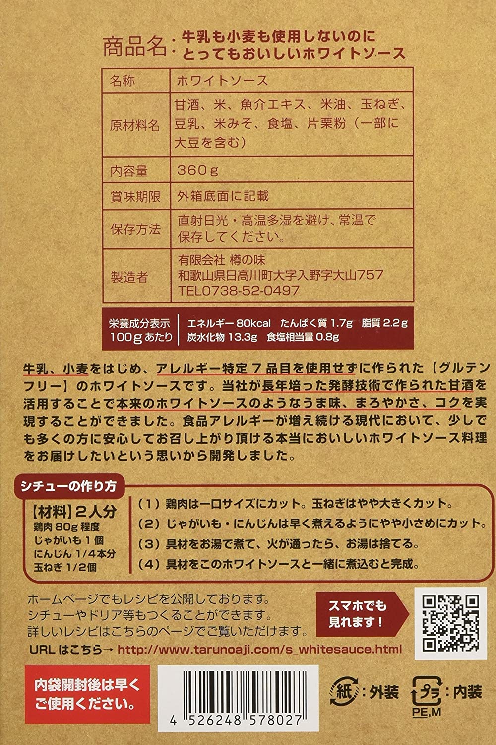 ・原材料:原材料:水、甘酒 米、魚介エキス、米油、玉ねぎ、豆乳、米みそ、食塩、片栗粉