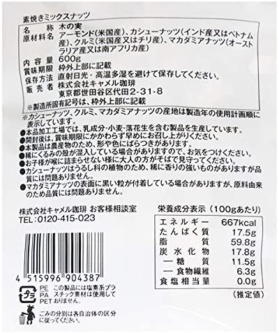 ・原材料:【原材料名】アーモンド(米国産)、カシューナッツ(インド産又はベトナム産)、クルミ(米国産又はチリ産)、マカダミアナッツ(オーストラリア産又は南アフリカ産)