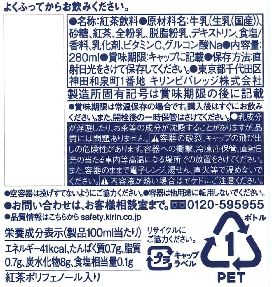・原材料:牛乳(生乳(国産))、砂糖、紅茶、全粉乳、脱脂粉乳、デキストリン、食塩/香料、乳化剤、ビタミンC、グルコン酸Na