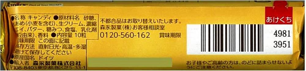 ・原材料:砂糖、水あめ(小麦を含む)、生クリーム、濃縮ホエイ、バター、糖みつ、食塩、乳化剤(大豆由来)、香料