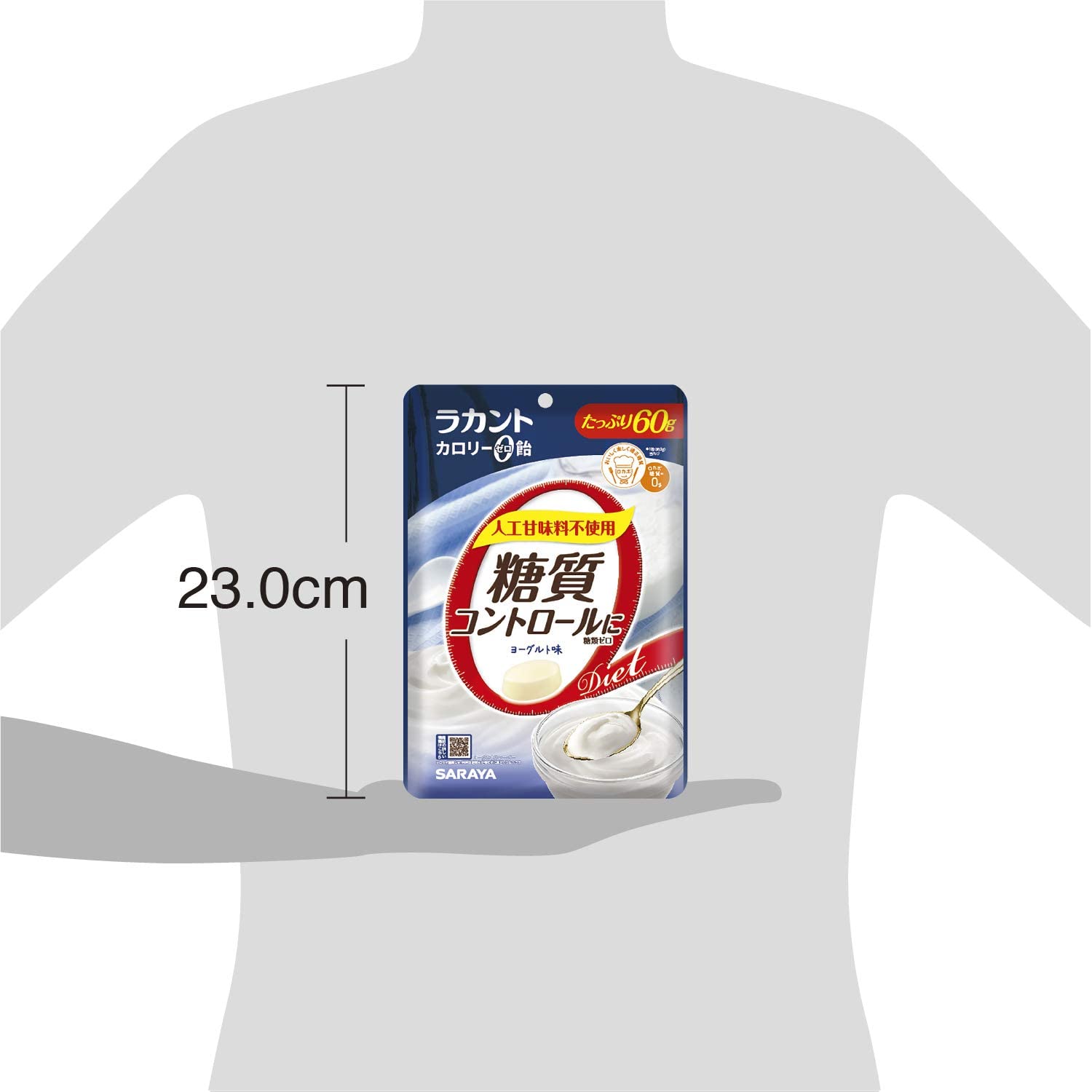 商品紹介飴で初めてのカロリーゼロ! ヘルシーキャンディ。こだわりの自然派素材、無着色! 甘酸っぱい味が幅広い年代に人気の、さわやかなヨーグルト味。ダイエット時や、口さみしい時におすすめです。高純度の羅漢果(ラカンカ)エキスを使用した糖類ゼロ、脂質ゼロ、カロリーゼロのキャンディです。上質な甘味と、食物繊維を配合し、さわやかな甘さに仕上げました。カロリーをひかえたいけれど、甘いものが食べたいというダイエット時にはもちろん、個包装していますので、ウォーキングやスポーツ時、旅行やレジャーのお供にもおすすめです。自然派素材、高純度羅漢果エキスを使用した、おいしいダイエット飴。100gあたり:熱量0kcal, たんぱく質0g, 脂質0g, 炭水化物99.7g(糖質98.5g(糖類0g), 食物繊維1.2g), 食塩相当量0.01gご注意(免責)>必ずお読みください本品を一度に多量にとると、体質によりお腹がゆるくなることがあります。その場合は、量を減らしてお召し上がりください。商品の特性上、少し硬めの飴になっております。急いで噛まず、口の中でゆっくり溶かしてお召し上がりください。本品は自然素材を使用しているため、色調がことなったり、原料由来の粒が混じることや、表面に白い粉が付着している事がありますが、品質には問題ありません。パッケージの写真、イラストは味をイメージしたものです。本品製造工場では乳、小麦、大豆を含む製品を製造しています。直射日光・高温多湿をさけ、常温で保存してください。