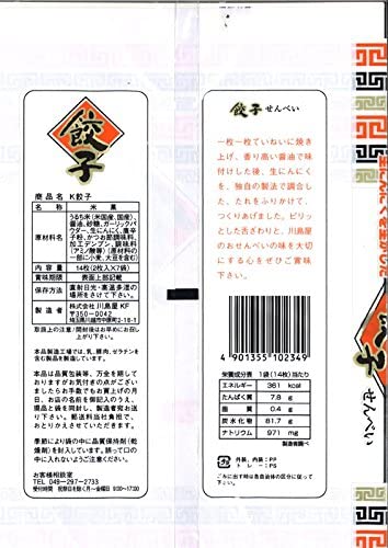 ・原材料:うるち米(米国産、国産)、醤油、砂糖、ガーリックパウダー、生にんにく、唐辛子粉、かつお節調味料、加工デンプン、調味料(アミノ酸等)