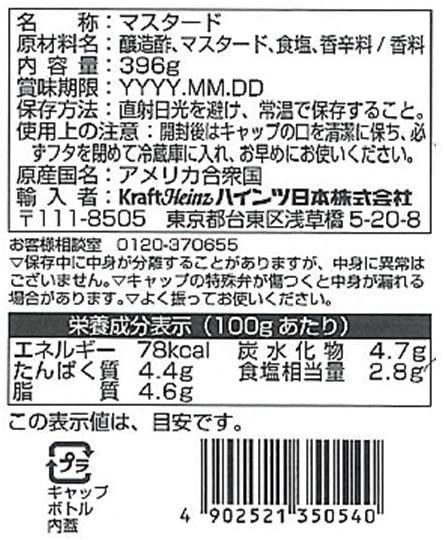 ・原材料:醸造酢、マスタード、食塩、香辛料、香料