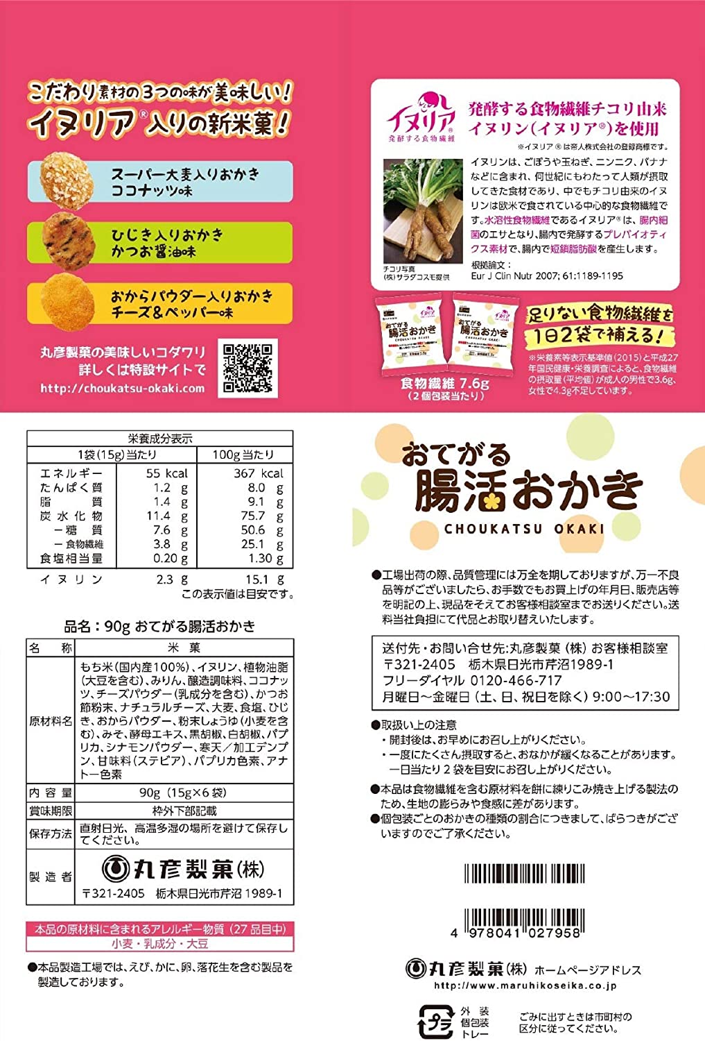 丸彦製菓 おてがる腸活おかき 90g ×12袋