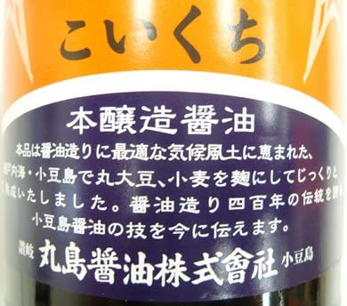 マルシマ 純正醤油(濃口)<900ml> ◎本醸造醤油◎醤油造りに最適な気候風土に恵まれた、瀬戸内海・小豆島で丸大豆、小麦を麹にしてじっくりと発酵、熟成いたしました。◎醤油造り四百年の伝統を誇る、小豆島醤油の技を今に伝えます。【商品詳細】■名称:こいくちしょうゆ(本醸造)■原材料名:大豆(カナダ産又は国産又はアメリカ産)、小麦、食塩■内容量:900ml■賞味期間:2年■保存方法:直射日光を避け、常温で保存してください。開栓後要冷蔵。■製造者:丸島醤油株式会社*アレルギー物質(28品目):小麦、大豆【栄養成分表示】(大さじ 1杯(15ml)当たり)・エネルギー:15kcal・たんぱく質:1.5g・脂質:0g・炭水化物:1.5g・食塩相当量:2.4g*この表示値は目安です。*画像はイメージです。実際にお届けする商品とパッケージ等が異なる場合がございますが基本的に中味の変更はございません。中味の変更のある商品については、商品情報を訂正して販売を行っております。