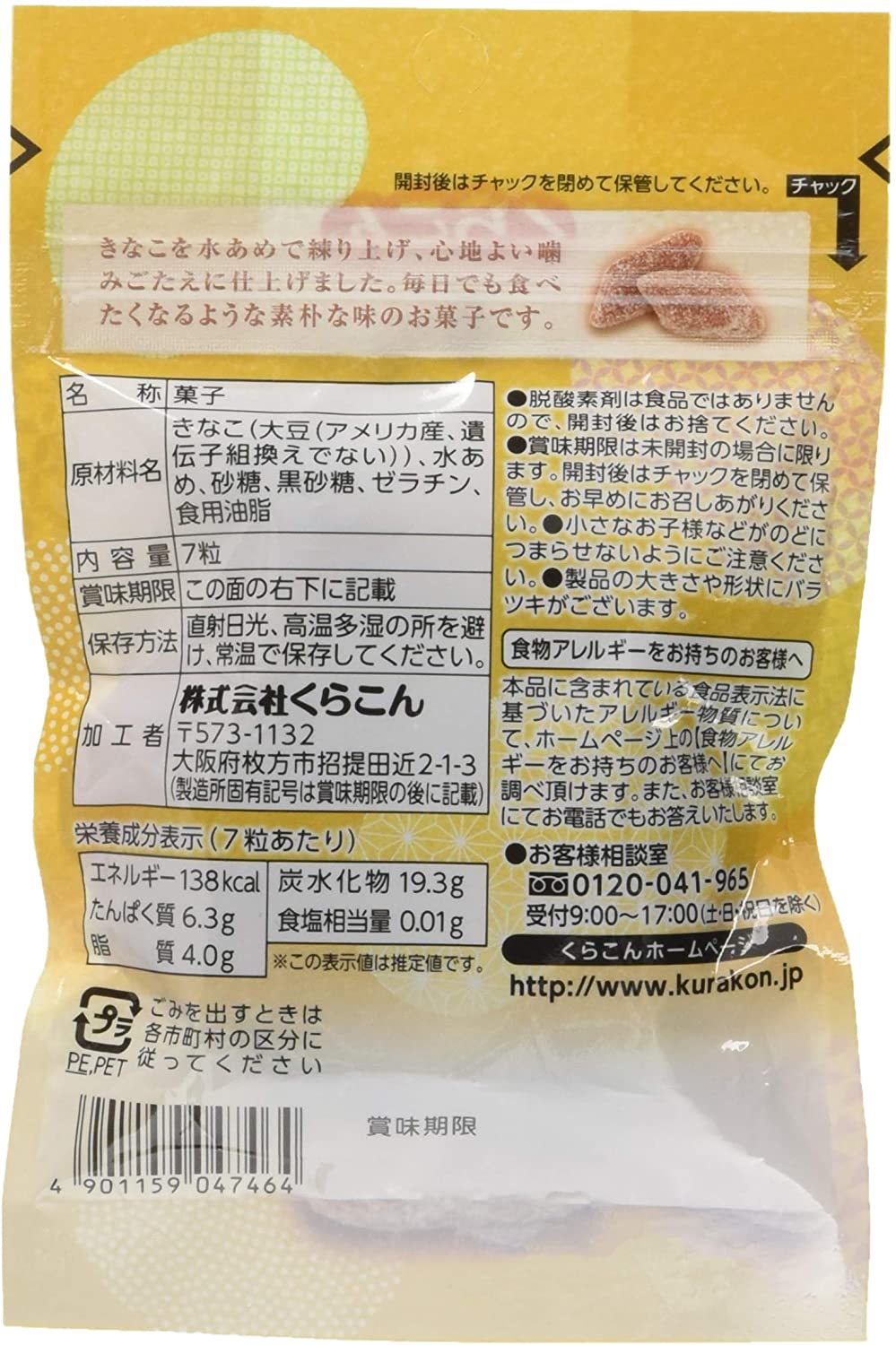 ・原材料:きなこ(大豆)、水あめ、砂糖、黒砂糖、ゼラチン、食用油脂