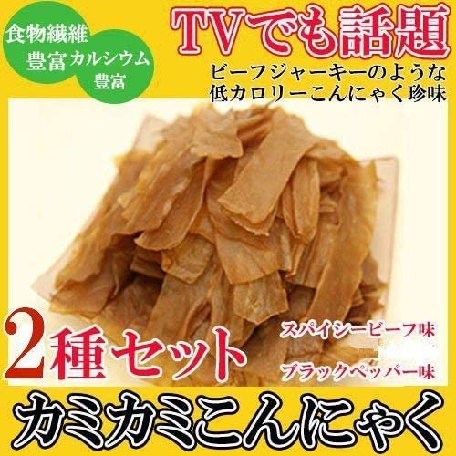 カミカミこんにゃく 2種(スパイシービーフ味・ブラックペッパー味)×各50g×各2袋 北毛久呂保ビーフジャーキーのようなオリジナルこんにゃく珍味 カルシウムも豊富でヘルシー