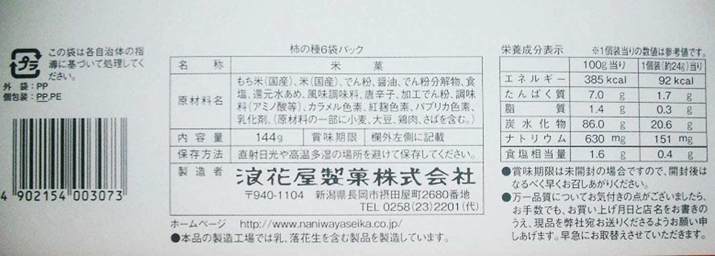 浪花屋 元祖柿の種6袋パック 144g ×12袋