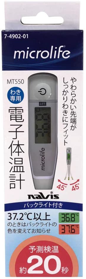 Microlife 電子体温計 スピード予測式20秒 バックライト付 やさしく曲がる先端 MT550 / 7-4902-01